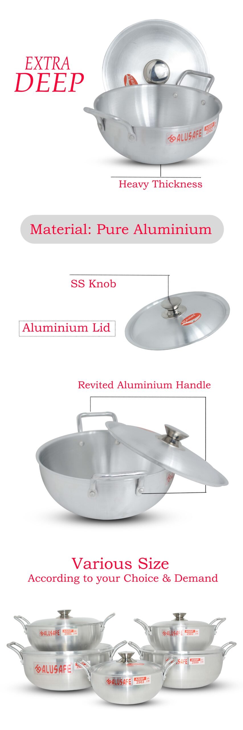 Discover superior cooking performance with the ALUSAFE Aluminium Short Handle Pan with Lid, designed with extra deepness to give you more space than regular pans. Perfect for frying, sautéing, and everyday home cooking, this pan ensures durability, elegance, and effortless use.
