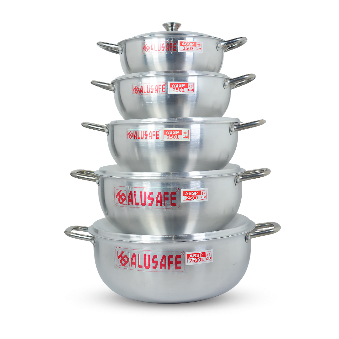 EID COMBO PACK 5 by Alusafe is a premium aluminium cookware set designed for convenient and efficient cooking. This combo includes a casserole, wok pan, roast pan and cooking pot—perfect for preparing a variety of dishes for your family during Eid and everyday meals.