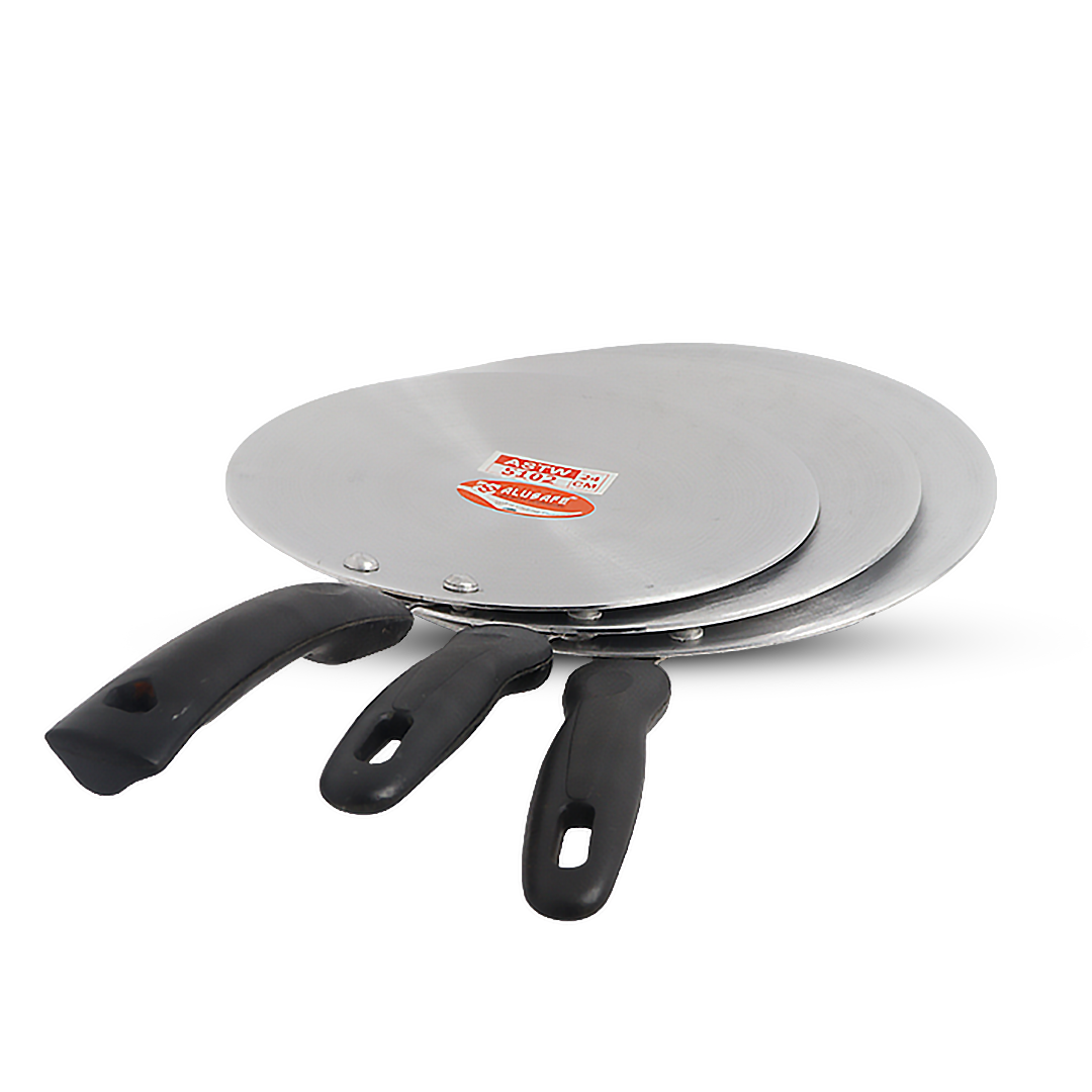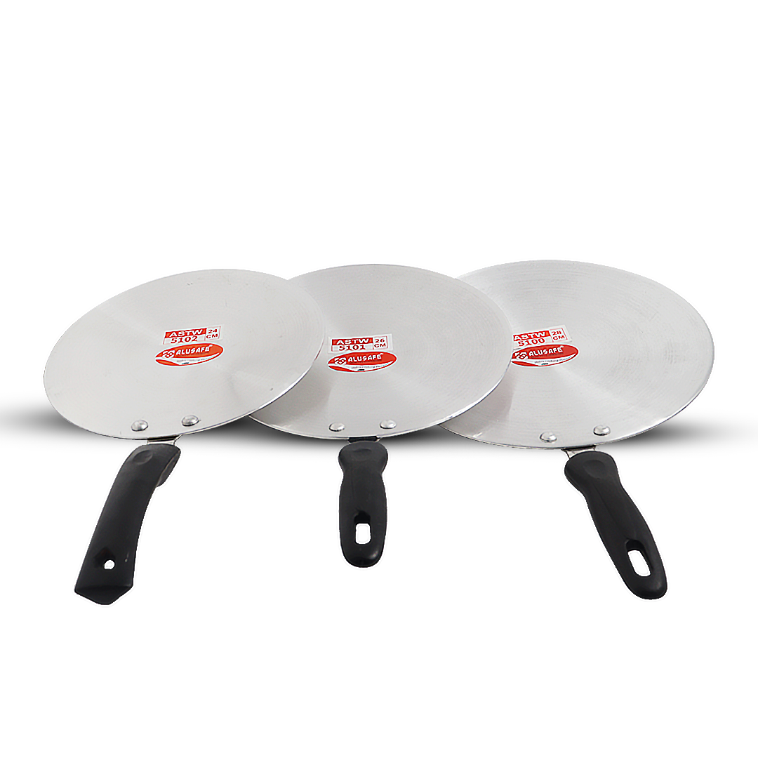 Make every breakfast special with the ALUSAFE Aluminium Tawa (Long Handle)—strong, safe, and designed for the perfect ruti and parata, every single day.